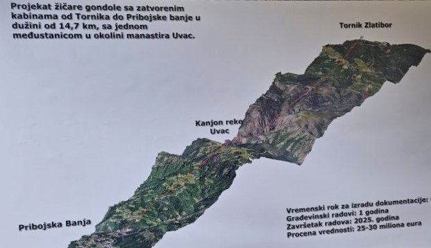 „Пола трасе будуће гондоле је на територији чајетинске општине, између осталог, и будућа станица код манастира Увац, док остали део припада Прибоју. На самом врху Торник биће потпуно обновљени, и у комерцијалну намену, слично Авалском торњу, доведени репетитори који су порушени у НАТО агресији 1999. године“, напоменуо је Стаматовић, напомињући да ће нова траса гондоле бити део гондолске мреже коју ће, осим ове најављене, чинити и тренутно најдужа на свету, златиборска „Голд гондола“, као и она чију изградњу Чајетинци увелико припремају, од врха Торника до врха Чиготе.