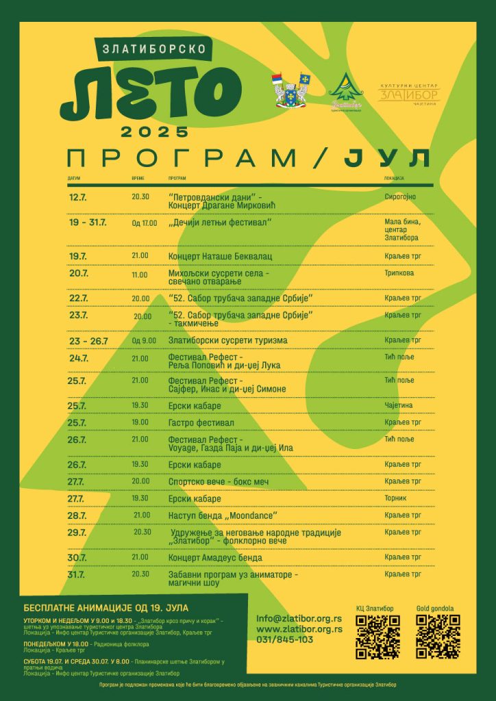 Летња сезона на Златибору из године у годину доноси безброј могућности за забаву, а Општина Чајетина и Туристичка организација Златибор потрудиле су се да уз богат програм и ово лето буде испуњено великим бројем садржаја за све узрасте.