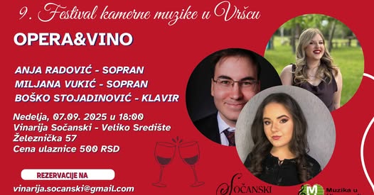 Недеља, 7. септембар, 18:00 у Винарији „Сочански“ Велико Средиште – сопрани Ана