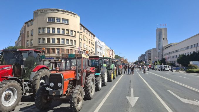 Испред комплекса Бановине где су смештени Влада и Скупштина Војводине, на позив шест пољопривредних удружења, јуче је одржан протест паора и грађана уз присуство око стотину трактора.