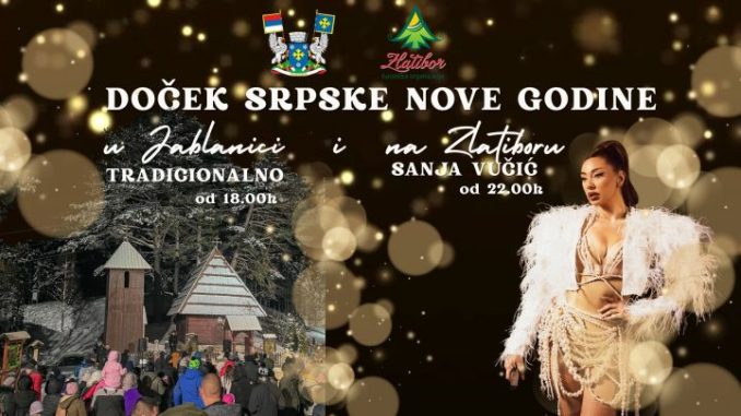 У самом срцу Златибора, на Краљевом тргу, уз богату сценографију, празнични амбијент и концерт Сање Вучић, Општина Чајетина и Туристичка организација Златибор од 22 часа организује дочек православне Нове године.