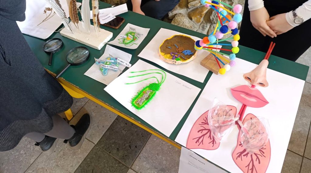 Биологија – ученици су кроз више приказа сугерисали да наука одбацује строгу биолошку поделу на расе, истичући генетички биодиверзитет. На понуђеним плакатима приказане су болести хромозома, негативан утицај расизма на генетске разлике, са закључком да су у биологији једнаке могућности за све. У оквиру овог предмета посетиоци су могли да виде још бројне ствари: хербаријум, модел ДНК и модел који показује како функционишу људска плућа, живог папагаја (пример животињског света), прављење модела ћелија са пластелином, огледе са лупом, експерименте са шишаркама и цветовима.
