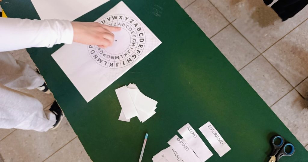 Цезаров точак представља папир са словима у два реда где су ученици добили шифроване речи из разних предмета (математике, физике, хемије, биологије…), и требали су да их дешифрују. Неки учесници су чак написали своја имена у шифрама користећи Цезаров точак.
